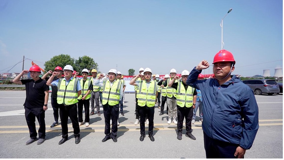 6月6日,芒種節(jié),“芒種忙種,有收有種”,“端午”假期后的第一天,對東灶港項目組來說也是忙碌的,在洋呂鐵路公司副總理蘇剛的帶領(lǐng)下,項目組上午在海門港新區(qū)管委會召開中天管帶機清障項目的工前圖紙會審、技術(shù)交底等工前相關(guān)工作協(xié)調(diào)會議,下午又馬不停蹄的趕往預制樁梁場了解東灶港預制樁生產(chǎn)情況;6月7日,項目管帶機90米桁架上跨港東大道安評會議又緊鑼密鼓的召開;6月8日,項目組又抽出時間來,組織和參與了東灶港項目組安全月宣誓承諾活動...這種每天都工作滿滿的狀態(tài),對東灶港項目組來說是家常便飯,早上一早項目組成員就趕往現(xiàn)場辦公點,布置會場,張貼安全掛圖、標語,調(diào)試設備等工作,上午9時,在激揚的音樂中,宣誓活動開始,蘇總帶領(lǐng)大家莊嚴的舉起右手:安全從我做起,遵章守紀,履行職責,…”東灶港項目部現(xiàn)場回蕩著那一句句鏗鏘有力的誓言。