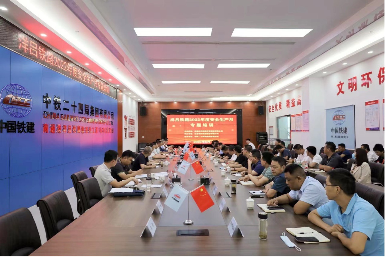 為認(rèn)真貫徹落實(shí)全國第21個(gè)安全生產(chǎn)月“遵守安全生產(chǎn)法,當(dāng)好第一責(zé)任人”主題,6月21日下午,洋呂鐵路2022年度安全生產(chǎn)月專題培訓(xùn)在中鐵二十四局項(xiàng)目部召開,鐵路公司總經(jīng)理趙國彬主持培訓(xùn)會。洋呂鐵路公司、江泰保險(xiǎn)經(jīng)紀(jì)股份有限公司南通分公司、南京上鐵公司、EPC總包、各工程局以及各監(jiān)理公司相關(guān)負(fù)責(zé)人、安全員參加培訓(xùn)。